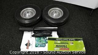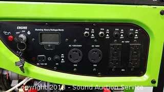 **UPDATED MiSSING ONE HANDLE AND TWO AXELS** Portable prane and gasoline generator. One of the 20 amp outlets needs a new fuse, battery may need charged. Retail $750. Keyed electric start offers smooth operation and run time, 13 HP 4-stroke, air cooled OHV engine starts easily. Condition of items sold - The auctioneer shall not be responsible for the correct description, authenticity, genuineness of, estimated selling price of, or defect in any lot, and makes no warranty in connection therewith. No allowance will be made or sale set aside on account of any incorrectness, error in cataloging, or any imperfection not noted. No deduction will be allowed on damaged articles as all goods being exposed for public exhibition are sold “as is” and without recourse. All measurements and sizes - are approximate. Claims - No claims will be allowed after goods are removed from premises. All lots - to be sold AS IS, WHERE IS. ALL SALES FINAL, WE DO NOT ACCEPT RETURNS.
