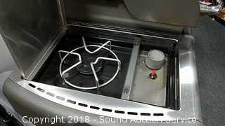 Has side burner and cover. Comes with instructions. In good condition. Condition of items sold - The auctioneer shall not be responsible for the correct description, authenticity, genuineness of, estimated selling price of, or defect in any lot, and makes no warranty in connection therewith. No allowance will be made or sale set aside on account of any incorrectness, error in cataloging, or any imperfection not noted. No deduction will be allowed on damaged articles as all goods being exposed for public exhibition are sold “as is” and without recourse. All measurements and sizes - are approximate. Claims - No claims will be allowed after goods are removed from premises. All lots - to be sold AS IS, WHERE IS. ALL SALES FINAL, WE DO NOT ACCEPT RETURNS.