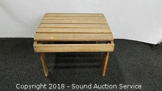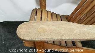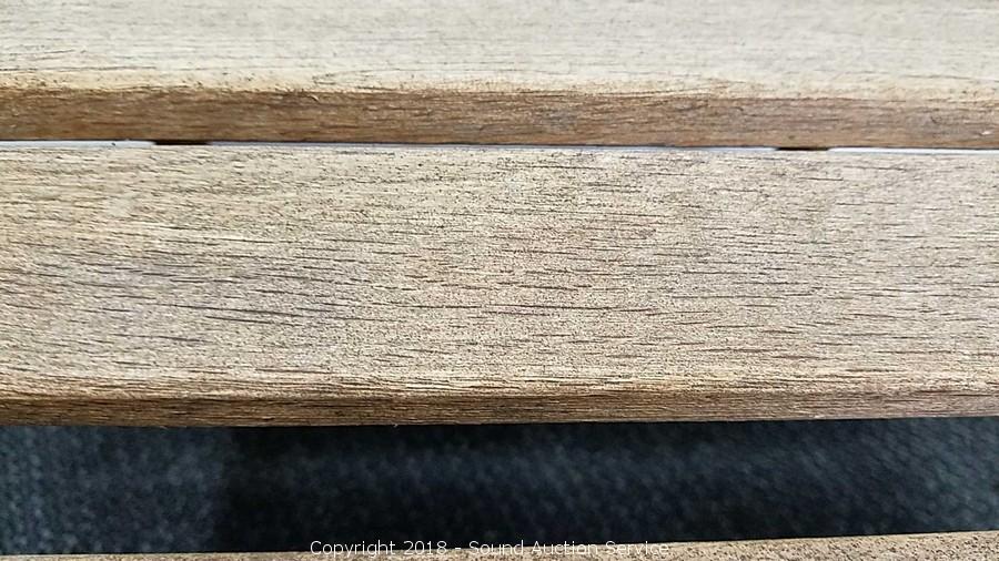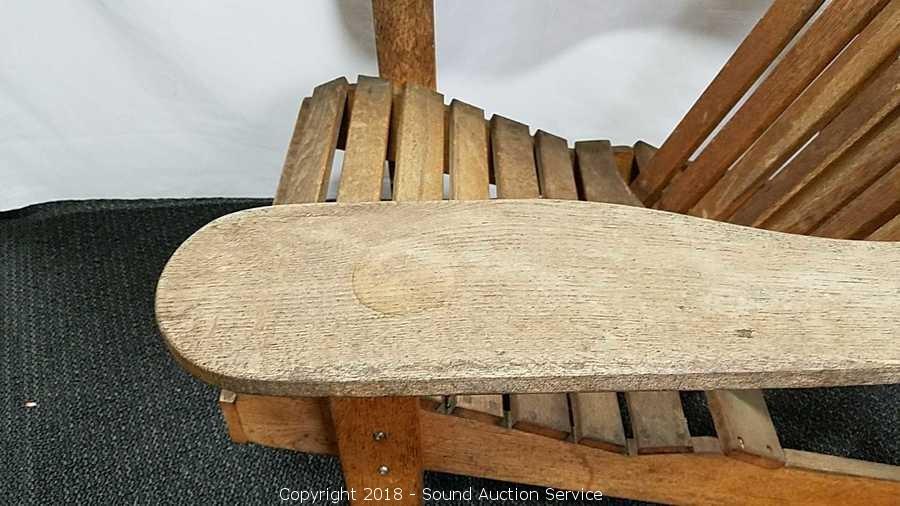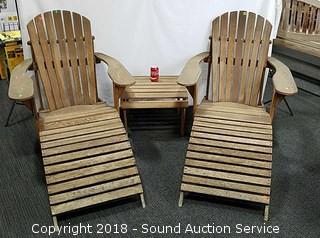 Lot #0228: Teak Adirondack Lounge Chairs w/Ottomans & Table
