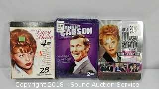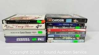 Some are NIP. Includes: Johnny Carson 2-Disc Set Sealed and more. Refer to photos for complete list of titles. Condition of items sold - The auctioneer shall not be responsible for the correct description, authenticity, genuineness of, estimated selling price of, or defect in any lot, and makes no warranty in connection therewith. No allowance will be made or sale set aside on account of any incorrectness, error in cataloging, or any imperfection not noted. No deduction will be allowed on damaged articles as all goods being exposed for public exhibition are sold “as is” and without recourse. All measurements and sizes - are approximate. Claims - No claims will be allowed after goods are removed from premises. All lots - to be sold AS IS, WHERE IS. ALL SALES FINAL, WE DO NOT ACCEPT RETURNS.
