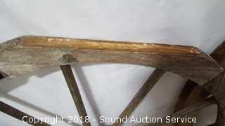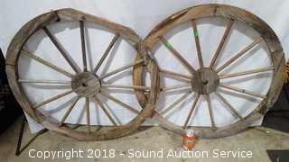 Lot #0055: (2) 31" Primitive Wooden Yard Art Wagon Wheels