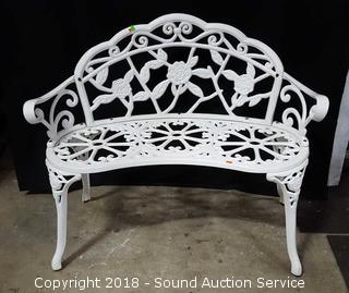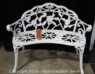 Lot #0070: Cast Iron White Painted Rose Pattern Bench