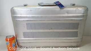 Locking, no key. Approx. 21" x 13" x 7". Condition of items sold - The auctioneer shall not be responsible for the correct description, authenticity, genuineness of, estimated selling price of, or defect in any lot, and makes no warranty in connection therewith. No allowance will be made or sale set aside on account of any incorrectness, error in cataloging, or any imperfection not noted. No deduction will be allowed on damaged articles as all goods being exposed for public exhibition are sold “as is” and without recourse. All measurements and sizes - are approximate. Claims - No claims will be allowed after goods are removed from premises. All lots - to be sold AS IS, WHERE IS. ALL SALES FINAL, WE DO NOT ACCEPT RETURNS.