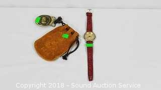 Lot #0270: Kennedy Wristwatch & Benjamin Franklin Belt Buckle