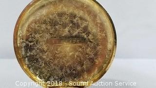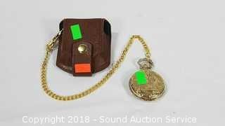 Quartz movement. Comes with leather case and chain fob. Condition of items sold - The auctioneer shall not be responsible for the correct description, authenticity, genuineness of, estimated selling price of, or defect in any lot, and makes no warranty in connection therewith. No allowance will be made or sale set aside on account of any incorrectness, error in cataloging, or any imperfection not noted. No deduction will be allowed on damaged articles as all goods being exposed for public exhibition are sold “as is” and without recourse. All measurements and sizes - are approximate. Claims - No claims will be allowed after goods are removed from premises. All lots - to be sold AS IS, WHERE IS. ALL SALES FINAL, WE DO NOT ACCEPT RETURNS.
