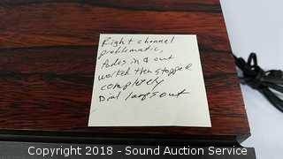 Model R-1040. Right channel is problematic, fades in and out, worked then stopped completely, dial lamps are out. Condition of items sold - The auctioneer shall not be responsible for the correct description, authenticity, genuineness of, estimated selling price of, or defect in any lot, and makes no warranty in connection therewith. No allowance will be made or sale set aside on account of any incorrectness, error in cataloging, or any imperfection not noted. No deduction will be allowed on damaged articles as all goods being exposed for public exhibition are sold “as is” and without recourse. All measurements and sizes - are approximate. Claims - No claims will be allowed after goods are removed from premises. All lots - to be sold AS IS, WHERE IS. ALL SALES FINAL, WE DO NOT ACCEPT RETURNS.