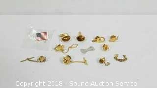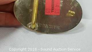 Also comes with a keychain fob and three belt buckles (one is German silver). Mostly lapel pins. Condition of items sold - The auctioneer shall not be responsible for the correct description, authenticity, genuineness of, estimated selling price of, or defect in any lot, and makes no warranty in connection therewith. No allowance will be made or sale set aside on account of any incorrectness, error in cataloging, or any imperfection not noted. No deduction will be allowed on damaged articles as all goods being exposed for public exhibition are sold “as is” and without recourse. All measurements and sizes - are approximate. Claims - No claims will be allowed after goods are removed from premises. All lots - to be sold AS IS, WHERE IS. ALL SALES FINAL, WE DO NOT ACCEPT RETURNS.