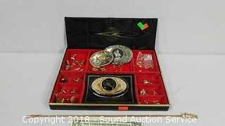 Lot #0224: Men's Jewelry Box w/Cufflinks, Lapel Pins & More