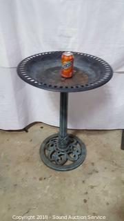 This auction is loaded with great outdoor yard art & various Estate items! Includes; Huge Concrete Fountain, Large Concrete Black Bear, Concrete Bench, Wrought Iron Fireplace Screens, Border Fencing, Various Figures (Made from various materials), Artwork, Bedroom Set, Vintage Chrome Dining Set, Vintage Electronics, Unassembled Models, Aluminum Halliburton Cases, Wagon Wheel Parts, Wrought Iron Trellises, Wrought Iron Benches, Ornate Outdoor Patio Table with Chairs & Bench, Life Size Metal Tortoises, Amazing Lane Boomerang Table, Coffee Table with Hidden Stools, Vintage Boy Scouts of America Items, Huge Stunning Area Rug & Much More!!!