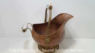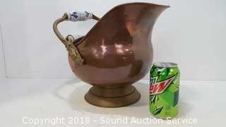 Lot #0165: Porcelain Handle Copper Coal Scuttle