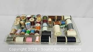 Case is quilted, has an organizer tray (cracked on one side) and a drawer. Includes: Needles, thread and more. Approx. 8" x 14" x 9". Condition of items sold - The auctioneer shall not be responsible for the correct description, authenticity, genuineness of, estimated selling price of, or defect in any lot, and makes no warranty in connection therewith. No allowance will be made or sale set aside on account of any incorrectness, error in cataloging, or any imperfection not noted. No deduction will be allowed on damaged articles as all goods being exposed for public exhibition are sold “as is” and without recourse. All measurements and sizes - are approximate. Claims - No claims will be allowed after goods are removed from premises. All lots - to be sold AS IS, WHERE IS. ALL SALES FINAL, WE DO NOT ACCEPT RETURNS.