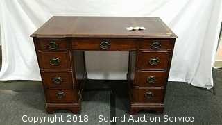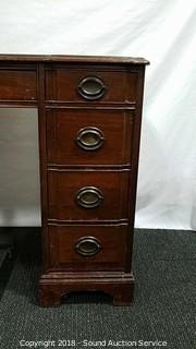 Lot #0133: Vtg. Sligh-Lowry Leather Top 7-Drawer Desk