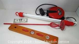 Lot #0038: Wood Block Level, Paint Mixer & Retractable Light