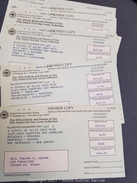 1985 Official Birds & Flowers of our 50 States First Day Cover Collection Album Appears to be complete, comes with original purchasing orders & paperwork. Pre-owned, Looks to have been stored well, please refer to photo's.