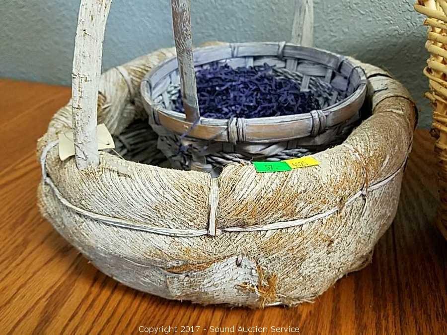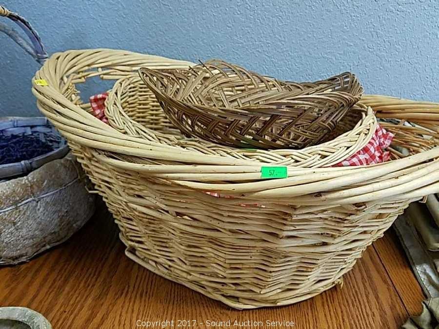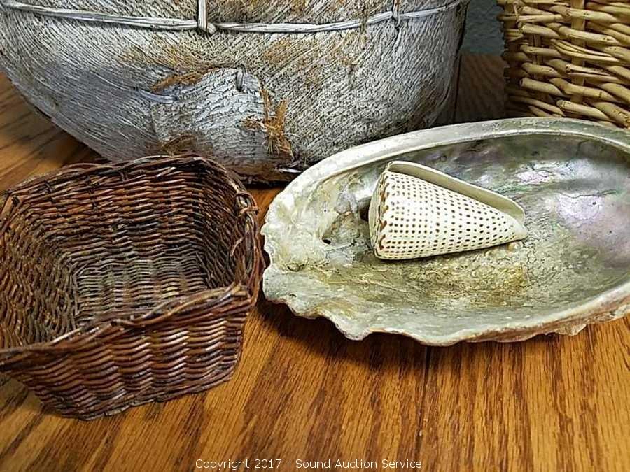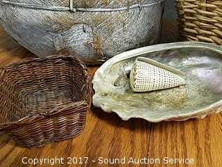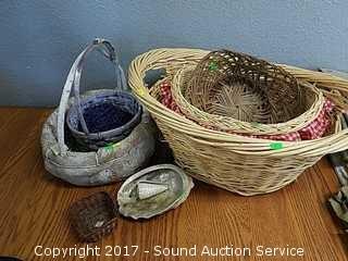 Lot #0057: (6) Woven Baskets & a Couple Seashells
