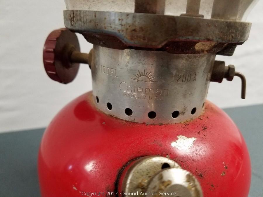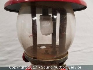 Coleman Model 200A Red Single Mantle Gas Lantern Approx. 12" Tall. Pre-owned, normal wear, some chips in the paint, please refer to photo's.