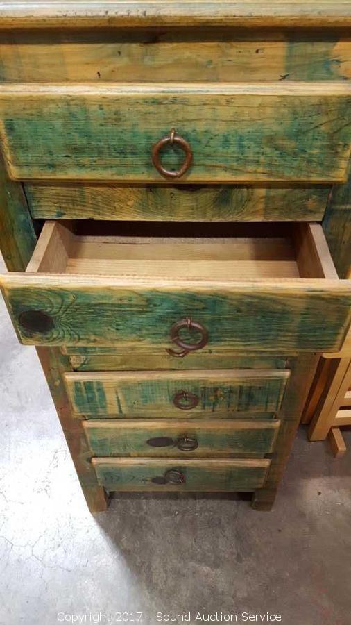 Lot #0101: Rustic Solid Wood 6 Drawer Chest
