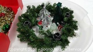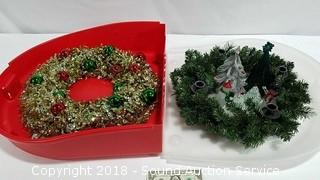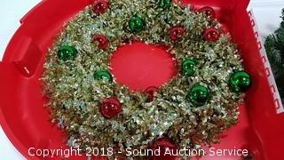 One wreath is a candelabra. Condition of items sold - The auctioneer shall not be responsible for the correct description, authenticity, genuineness of, estimated selling price of, or defect in any lot, and makes no warranty in connection therewith. No allowance will be made or sale set aside on account of any incorrectness, error in cataloging, or any imperfection not noted. No deduction will be allowed on damaged articles as all goods being exposed for public exhibition are sold “as is” and without recourse. All measurements and sizes - are approximate. Claims - No claims will be allowed after goods are removed from premises. All lots - to be sold AS IS, WHERE IS. ALL SALES FINAL, WE DO NOT ACCEPT RETURNS.
