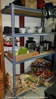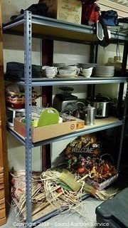 Contents Not Included. Has 4 shelves. Corner on a piece of one of the partical board shelves is broken. Contents Approx. 6ft H, 48" W, 24" D. Condition of items sold - The auctioneer shall not be responsible for the correct description, authenticity, genuineness of, estimated selling price of, or defect in any lot, and makes no warranty in connection therewith. No allowance will be made or sale set aside on account of any incorrectness, error in cataloging, or any imperfection not noted. No deduction will be allowed on damaged articles as all goods being exposed for public exhibition are sold “as is” and without recourse. All measurements and sizes - are approximate. Claims - No claims will be allowed after goods are removed from premises. All lots - to be sold AS IS, WHERE IS. ALL SALES FINAL, WE DO NOT ACCEPT RETURNS.