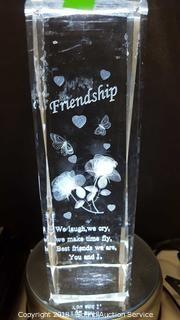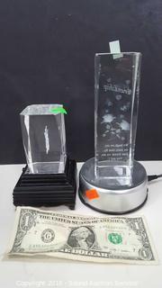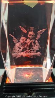 Lot #0018: Friendship & Angel Glass Paperweights w/LED Stands