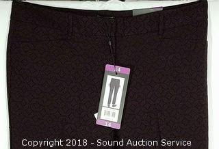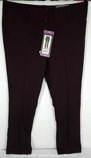 Wine/Black color. Comes with original tag. 30" inseam. Condition of items sold - The auctioneer shall not be responsible for the correct description, authenticity, genuineness of, estimated selling price of, or defect in any lot, and makes no warranty in connection therewith. No allowance will be made or sale set aside on account of any incorrectness, error in cataloging, or any imperfection not noted. No deduction will be allowed on damaged articles as all goods being exposed for public exhibition are sold “as is” and without recourse. All measurements and sizes - are approximate. Claims - No claims will be allowed after goods are removed from premises. All lots - to be sold AS IS, WHERE IS. ALL SALES FINAL, WE DO NOT ACCEPT RETURNS.