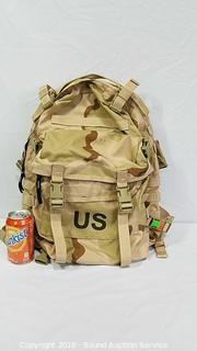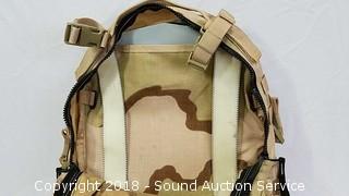Desert camo print. In overall good condition. Condition of items sold - The auctioneer shall not be responsible for the correct description, authenticity, genuineness of, estimated selling price of, or defect in any lot, and makes no warranty in connection therewith. No allowance will be made or sale set aside on account of any incorrectness, error in cataloging, or any imperfection not noted. No deduction will be allowed on damaged articles as all goods being exposed for public exhibition are sold “as is” and without recourse. All measurements and sizes - are approximate. Claims - No claims will be allowed after goods are removed from premises. All lots - to be sold AS IS, WHERE IS. ALL SALES FINAL, WE DO NOT ACCEPT RETURNS.