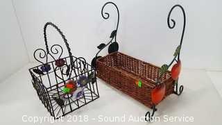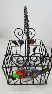 Lot #0060: Pair of Metal Frame Woven Basket Decor