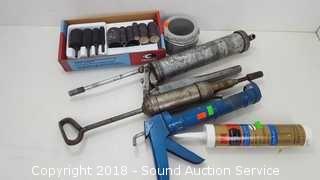 Lot #0105: Sanding Drum Kit, Grease Guns & Caulk Gun