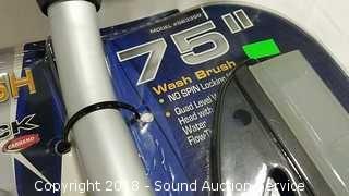 75" wash brush. Pole adapter, smart nozzle, wipe-out drying blade. Condition of items sold - The auctioneer shall not be responsible for the correct description, authenticity, genuineness of, estimated selling price of, or defect in any lot, and makes no warranty in connection therewith. No allowance will be made or sale set aside on account of any incorrectness, error in cataloging, or any imperfection not noted. No deduction will be allowed on damaged articles as all goods being exposed for public exhibition are sold “as is” and without recourse. All measurements and sizes - are approximate. Claims - No claims will be allowed after goods are removed from premises. All lots - to be sold AS IS, WHERE IS. ALL SALES FINAL, WE DO NOT ACCEPT RETURNS.