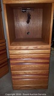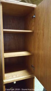 Lot #0135: Tall Oak 2-Drawer Lighted Cabinet