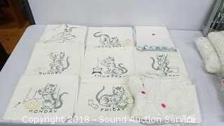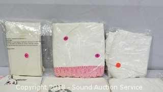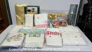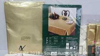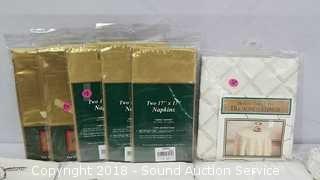 Includes: Tablecloths, napkins and more. Condition of items sold - The auctioneer shall not be responsible for the correct description, authenticity, genuineness of, estimated selling price of, or defect in any lot, and makes no warranty in connection therewith. No allowance will be made or sale set aside on account of any incorrectness, error in cataloging, or any imperfection not noted. No deduction will be allowed on damaged articles as all goods being exposed for public exhibition are sold “as is” and without recourse. All measurements and sizes - are approximate. Claims - No claims will be allowed after goods are removed from premises. All lots - to be sold AS IS, WHERE IS. ALL SALES FINAL, WE DO NOT ACCEPT RETURNS.