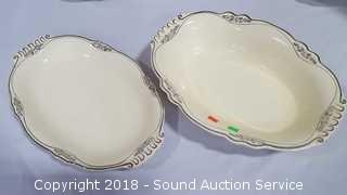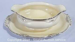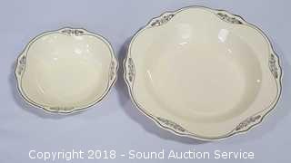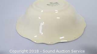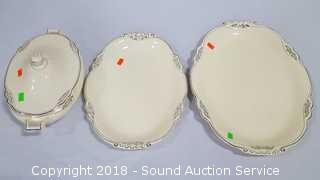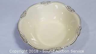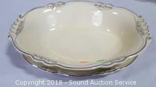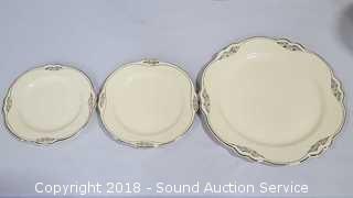 Silver Virginia Rose Pattern. Complete Service for 11, 89 pieces ( complete service for 12 but missing one dessert plate). Couple pieces have chips. 9", 13" & 15" platters. Condition of items sold - The auctioneer shall not be responsible for the correct description, authenticity, genuineness of, estimated selling price of, or defect in any lot, and makes no warranty in connection therewith. No allowance will be made or sale set aside on account of any incorrectness, error in cataloging, or any imperfection not noted. No deduction will be allowed on damaged articles as all goods being exposed for public exhibition are sold “as is” and without recourse. All measurements and sizes - are approximate. Claims - No claims will be allowed after goods are removed from premises. All lots - to be sold AS IS, WHERE IS. ALL SALES FINAL, WE DO NOT ACCEPT RETURNS.