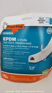 Includes; 5/16' x 1/4" x 17ft (D Profile, White), and 9/16" x 5/16" x 10ft (Ribbed Profile, Gray). Condition of items sold - The auctioneer shall not be responsible for the correct description, authenticity, genuineness of, estimated selling price of, or defect in any lot, and makes no warranty in connection therewith. No allowance will be made or sale set aside on account of any incorrectness, error in cataloging, or any imperfection not noted. No deduction will be allowed on damaged articles as all goods being exposed for public exhibition are sold “as is” and without recourse. All measurements and sizes - are approximate. Claims - No claims will be allowed after goods are removed from premises. All lots - to be sold AS IS, WHERE IS. ALL SALES FINAL, WE DO NOT ACCEPT RETURNS.