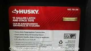 Lot #0327: (3) Husky 15 Gallon Latch & Stack Totes