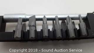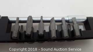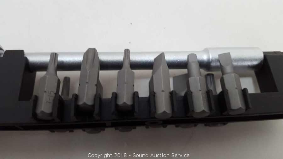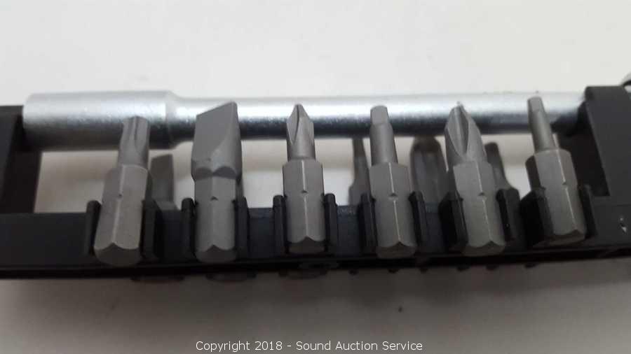 Has bit storage in the handle. 14 pieces. Condition of items sold - The auctioneer shall not be responsible for the correct description, authenticity, genuineness of, estimated selling price of, or defect in any lot, and makes no warranty in connection therewith. No allowance will be made or sale set aside on account of any incorrectness, error in cataloging, or any imperfection not noted. No deduction will be allowed on damaged articles as all goods being exposed for public exhibition are sold “as is” and without recourse. All measurements and sizes - are approximate. Claims - No claims will be allowed after goods are removed from premises. All lots - to be sold AS IS, WHERE IS. ALL SALES FINAL, WE DO NOT ACCEPT RETURNS.