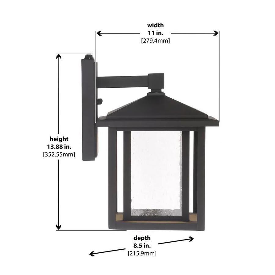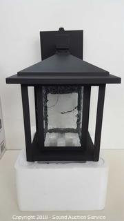 Black finish. Seeded glass. Dusk to Dawn. Only 10.45 W. Condition of items sold - The auctioneer shall not be responsible for the correct description, authenticity, genuineness of, estimated selling price of, or defect in any lot, and makes no warranty in connection therewith. No allowance will be made or sale set aside on account of any incorrectness, error in cataloging, or any imperfection not noted. No deduction will be allowed on damaged articles as all goods being exposed for public exhibition are sold “as is” and without recourse. All measurements and sizes - are approximate. Claims - No claims will be allowed after goods are removed from premises. All lots - to be sold AS IS, WHERE IS. ALL SALES FINAL, WE DO NOT ACCEPT RETURNS.
