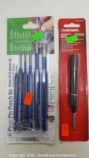 This auction consists of a variety of tools, from heavy duty construction to everyday household. Includes: Extra Height Husky Toolbox, Rolling Job Boxes, Stud Finders, Variety of Dewalt Hand Tools (Some new, some used), Mailboxes (Some locking), Painting Supplies, Air Compressor, Pneumatic Tools, Wrenches, Sockets, Tile Saws, Shop Vacs, Dewalt Laser Levels, Circular Saws, Shelving Units, Measuring Tapes, Hex Key Sets, Heavy Duty Totes, Clamps, Milwaukee Rotary Hammer Kit, Trailer Lights, Saw Blades, Lawn Mower, Hedge Trimmer, Battery Chargers & Maintainers, Full Size Locking Truck Box, Keyed & Keyless Entries & Much Much More!