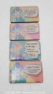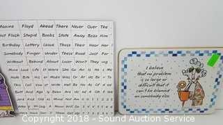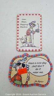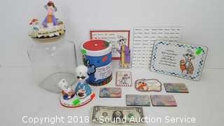 Includes: Magnets, S/P Shakers, Tin & Glass Cookie Jar. Condition of items sold - The auctioneer shall not be responsible for the correct description, authenticity, genuineness of, estimated selling price of, or defect in any lot, and makes no warranty in connection therewith. No allowance will be made or sale set aside on account of any incorrectness, error in cataloging, or any imperfection not noted. No deduction will be allowed on damaged articles as all goods being exposed for public exhibition are sold “as is” and without recourse. All measurements and sizes - are approximate. Claims - No claims will be allowed after goods are removed from premises. All lots - to be sold AS IS, WHERE IS. ALL SALES FINAL, WE DO NOT ACCEPT RETURNS.