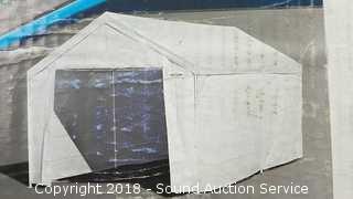 Front wall with dual zipper, 20ft side walls, and elastic wall straps. Condition of items sold - The auctioneer shall not be responsible for the correct description, authenticity, genuineness of, estimated selling price of, or defect in any lot, and makes no warranty in connection therewith. No allowance will be made or sale set aside on account of any incorrectness, error in cataloging, or any imperfection not noted. No deduction will be allowed on damaged articles as all goods being exposed for public exhibition are sold “as is” and without recourse. All measurements and sizes - are approximate. Claims - No claims will be allowed after goods are removed from premises. All lots - to be sold AS IS, WHERE IS. ALL SALES FINAL, WE DO NOT ACCEPT RETURNS.
