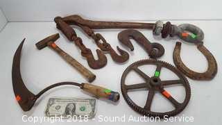 This auction has some interesting & rare antiques, collectibles home furnishings, decor & more. Includes but not limited too: Incredible Reclaimed Teak Dining Table by David Smith, Antique English Shrunk / Wardrobe, Extensole Dining Table, Rare Periscope, Welded Log Boom Chain Mail Box Post, Vtg. Autographed Photos, Oil Lamps, Russel Wright Stoneware Dish Set, Vtg. Butcher Knives, M&M Collectibles, Vtg. Chevrolet Apache Emblems, Speargun, Camping Tents, Chainsaw, Sea Shells, Fossil Clam Shells, Cherry Wood Dresser, Antiques White Treadle Sewing Machine (Excellent condition), Cedar Lined Chest, Walnut Gun Racks, 33 Record Albums, AM/FM/Record Cabinet, Hummel Figurines & Plates, Maple Drop Front Secretary Desk, Tire Swing, Wrought Iron Bench, Antique Maple Colonial Dresser & So Much More!!!