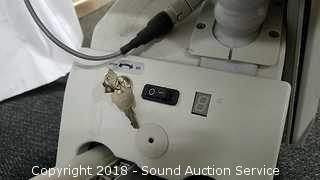 Folding armrest, swivel seat, footrest, seatbelt. Up to 280lbs. The rail is approx. 95" L. Comes with owner's book. Condition of items sold - The auctioneer shall not be responsible for the correct description, authenticity, genuineness of, estimated selling price of, or defect in any lot, and makes no warranty in connection therewith. No allowance will be made or sale set aside on account of any incorrectness, error in cataloging, or any imperfection not noted. No deduction will be allowed on damaged articles as all goods being exposed for public exhibition are sold “as is” and without recourse. All measurements and sizes - are approximate. Claims - No claims will be allowed after goods are removed from premises. All lots - to be sold AS IS, WHERE IS. ALL SALES FINAL, WE DO NOT ACCEPT RETURNS.