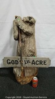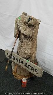 Lot #0259: God's Acre Bear w/Golf Club Chainsaw Carving