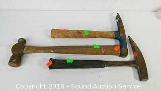 4 Ton Hydraulic Jack, 2 Rock Hammers, Ball Peen Hammer & Glass Suctions Cups. Condition of items sold - The auctioneer shall not be responsible for the correct description, authenticity, genuineness of, estimated selling price of, or defect in any lot, and makes no warranty in connection therewith. No allowance will be made or sale set aside on account of any incorrectness, error in cataloging, or any imperfection not noted. No deduction will be allowed on damaged articles as all goods being exposed for public exhibition are sold “as is” and without recourse. All measurements and sizes - are approximate. Claims - No claims will be allowed after goods are removed from premises. All lots - to be sold AS IS, WHERE IS. ALL SALES FINAL, WE DO NOT ACCEPT RETURNS.
