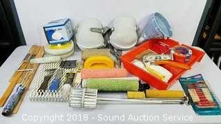 Knee Pads, Trowel, Funnel, Mixer & More. Condition of items sold - The auctioneer shall not be responsible for the correct description, authenticity, genuineness of, estimated selling price of, or defect in any lot, and makes no warranty in connection therewith. No allowance will be made or sale set aside on account of any incorrectness, error in cataloging, or any imperfection not noted. No deduction will be allowed on damaged articles as all goods being exposed for public exhibition are sold “as is” and without recourse. All measurements and sizes - are approximate. Claims - No claims will be allowed after goods are removed from premises. All lots - to be sold AS IS, WHERE IS. ALL SALES FINAL, WE DO NOT ACCEPT RETURNS.
