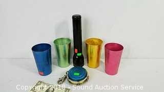 Lot #0095: Spencers Loggers Tape, Mag Light & Aluminum Cups