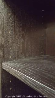 Black wood grain vineer. Approx. 31" x 11" D x 79" H. Condition of items sold - The auctioneer shall not be responsible for the correct description, authenticity, genuineness of, estimated selling price of, or defect in any lot, and makes no warranty in connection therewith. No allowance will be made or sale set aside on account of any incorrectness, error in cataloging, or any imperfection not noted. No deduction will be allowed on damaged articles as all goods being exposed for public exhibition are sold “as is” and without recourse. All measurements and sizes - are approximate. Claims - No claims will be allowed after goods are removed from premises. All lots - to be sold AS IS, WHERE IS. ALL SALES FINAL, WE DO NOT ACCEPT RETURNS.