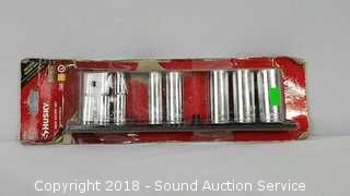 6 Point, Comes With Rail. Includes: 5/16", 3/8", 7/16", 9/16", 5/8", 3/4", 13/16" and 7/8". Condition of items sold - The auctioneer shall not be responsible for the correct description, authenticity, genuineness of, estimated selling price of, or defect in any lot, and makes no warranty in connection therewith. No allowance will be made or sale set aside on account of any incorrectness, error in cataloging, or any imperfection not noted. No deduction will be allowed on damaged articles as all goods being exposed for public exhibition are sold “as is” and without recourse. All measurements and sizes - are approximate. Claims - No claims will be allowed after goods are removed from premises. All lots - to be sold AS IS, WHERE IS. ALL SALES FINAL, WE DO NOT ACCEPT RETURNS.