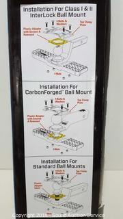Heavy duty aluminum construction, 500lb capacity, mounts to ball mount, missing a couple bolts. Condition of items sold - The auctioneer shall not be responsible for the correct description, authenticity, genuineness of, estimated selling price of, or defect in any lot, and makes no warranty in connection therewith. No allowance will be made or sale set aside on account of any incorrectness, error in cataloging, or any imperfection not noted. No deduction will be allowed on damaged articles as all goods being exposed for public exhibition are sold “as is” and without recourse. All measurements and sizes - are approximate. Claims - No claims will be allowed after goods are removed from premises. All lots - to be sold AS IS, WHERE IS. ALL SALES FINAL, WE DO NOT ACCEPT RETURNS.