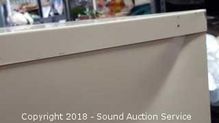 Approx. 52" H, 15" W, 26-1/2" D. Has a dent on the right side and a small dent in the top. Condition of items sold - The auctioneer shall not be responsible for the correct description, authenticity, genuineness of, estimated selling price of, or defect in any lot, and makes no warranty in connection therewith. No allowance will be made or sale set aside on account of any incorrectness, error in cataloging, or any imperfection not noted. No deduction will be allowed on damaged articles as all goods being exposed for public exhibition are sold “as is” and without recourse. All measurements and sizes - are approximate. Claims - No claims will be allowed after goods are removed from premises. All lots - to be sold AS IS, WHERE IS. ALL SALES FINAL, WE DO NOT ACCEPT RETURNS.