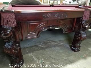 Lot #0016: Incredible Ornately Carved Mahogany Pool Table